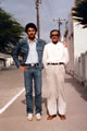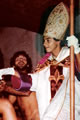 Com o ator Buarque de Aquino, na peça "Suplício de Frei Caneca" (1980)