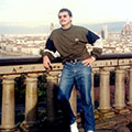 | Com o World Trade Center ao fundo, em Nova Iorque (1996) |